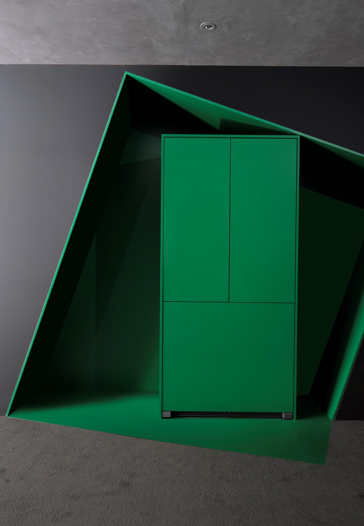 一切设计手法服务于空间与产品,协同标准化厨电结构与艺术化置景,编排令人有所收获的感知体验,象征生命力的“青苹果”仿佛被“冰块”艺术装置瞬间保鲜,带观众通过艺术理解“鲜”的本质。